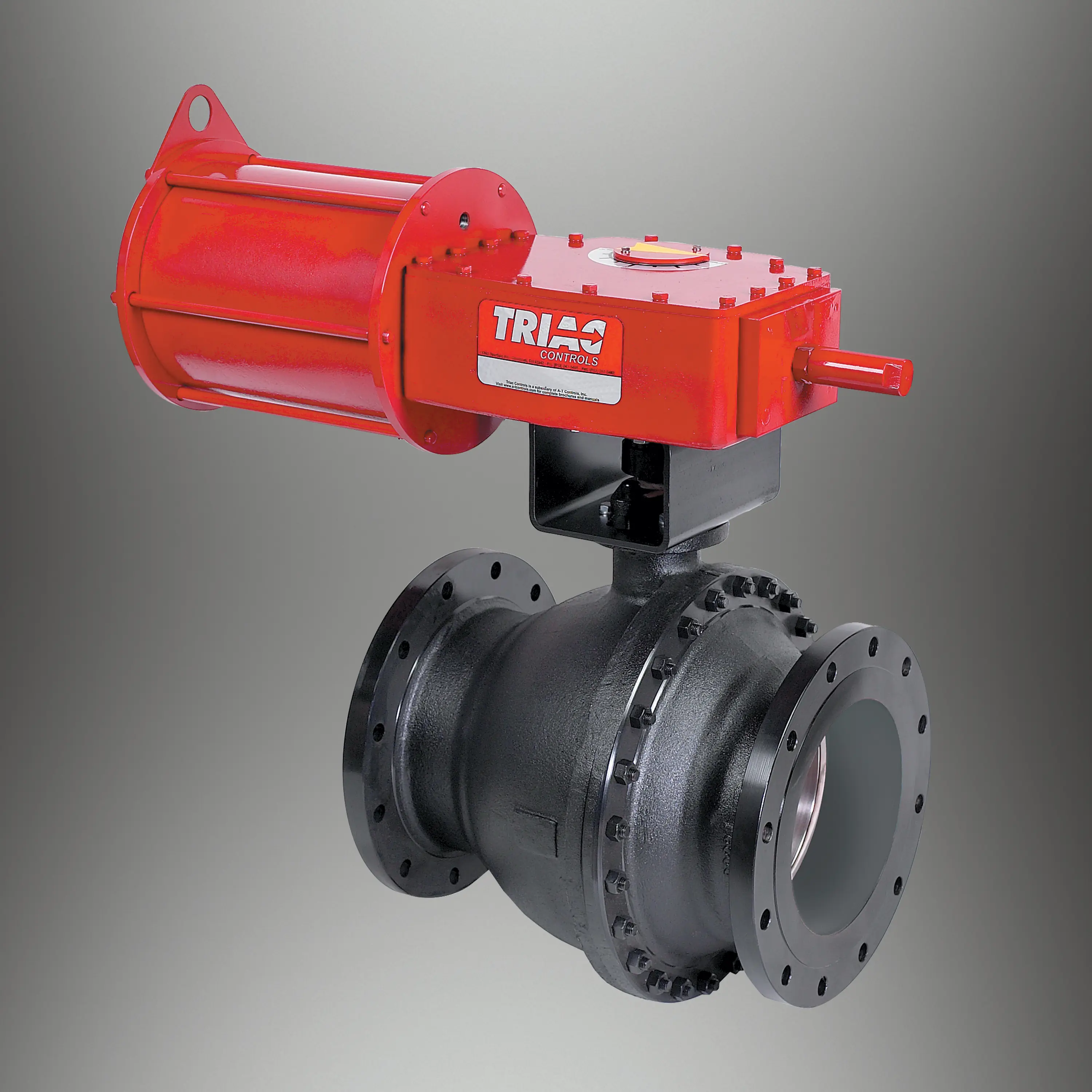 The TRIAC® heavy duty scotch yoke actuator product line offers a broad range of torques to 1,600,000 in-lbs. The THD series is designed to operate ball, butterfly, plug valves, dampers or any device that requires a quarter-turn movement for on-off or throttling service. Our standard offering is the symmetrical design yoke that delivers maximum torque at both ends of the 90º cycle. The square slide bearing with guide bar provides high cycle life and smooth stroke while minimizing wear points. Also available is a canted yoke design, which is ideal for butterfly valves in sizes C11 and larger.